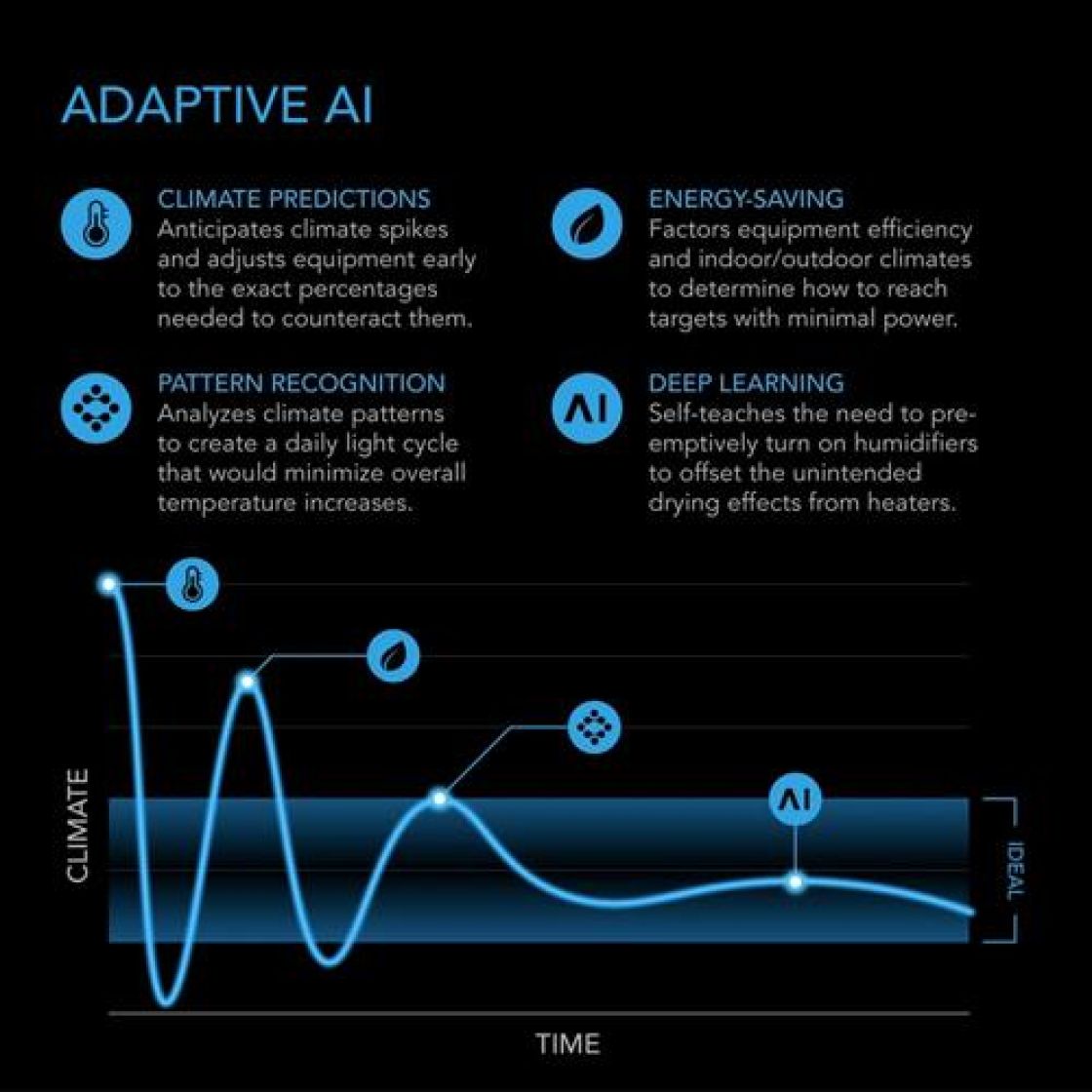 CONTROLLER AI+ älykäs, kosketusnäyllä varustettu kasvihuonekontrolleri, joka käyttää tekoälyäavustettua oppimista laitteiden universaaliin ohjaamiseen ja optimaalisten ilmasto-olosuhteiden valvontaan. Voit yhdistää jopa 32 UIS™, tai kolmannen osapuolen -laitteeseen (splittereitä/adaptereita käytettäessä), kuten tuulettimiin, kasvivaloihin, ilmankostuttimiin/kuivaimiin, lämmittimiin/viilentimiin, co2-annostelijoihin jne. optimoidaksesi kasvatustilastasi mm. lämpötilan, kosteuden, sekä VPD- ja valaistus-tason. AI+ kontrolleri sisältää myös älykkään ulkotilan valvonnan, joka seuraa ilmastoa sekä telttasi sisällä, että ulkopuolella suurien vaihteluiden välttämiseksi. AI+ kontrolleriin voidaan lisätä myös erikseen hankittavat CO2-, hydro- ja multa-anturit (tulevaisuudessa myös pH ja EC) , joilla automatisoitavien ja hyödynnettävää dataa tuottavien laitteiden lista vain jatkuu.