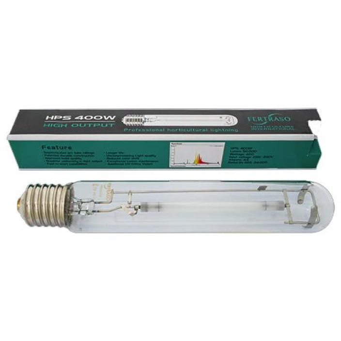Fertraso 400W SPNA-polttimo on tasapainotettu kasvihuonepolttimo kasvuun ja kukkimiseen. 8000h käyttö heikentää valotehoa noin 5-20%, joten polttimo suositellaan vaihdettavaksi vuoden välein.