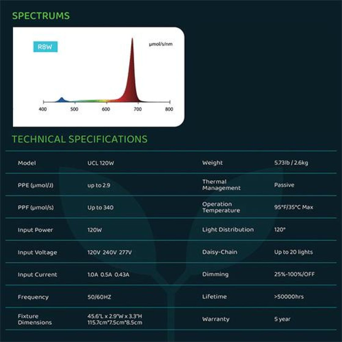 120W LED-valaisin, joka on suunniteltu alavaloksi kasvirivistöjen väliin
