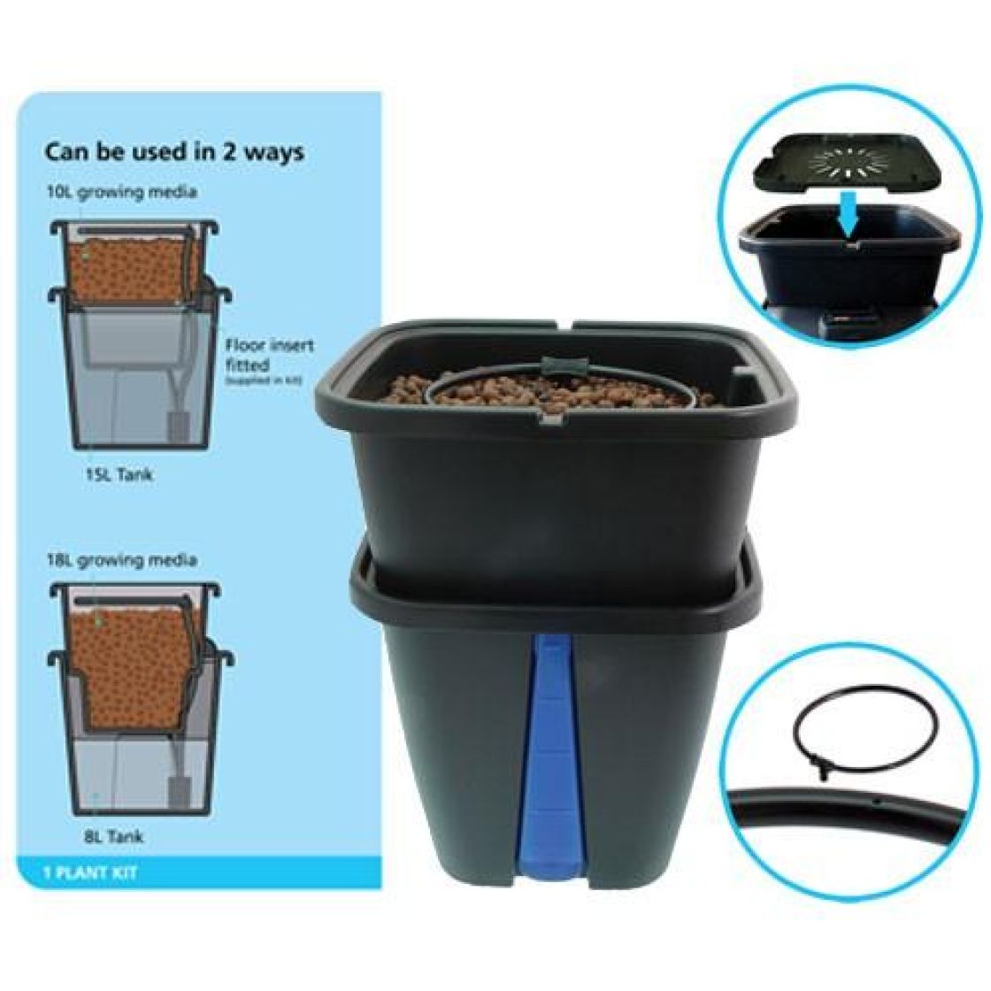 Gemini on varustettu välilevyllä, jonka ansiosta voit määrittää kuinka paljon kasvualustaa käytät. Jos käytät kasvatusastiassa välilevyä, on vesitila suurempi. Ilman välilevyä kasvatusalustaa laitetaan enemmän ja tällöin vesitila pienenee. Päätös on sinun.