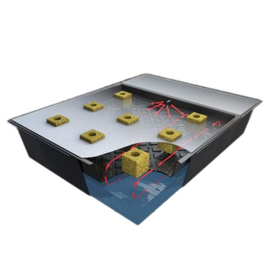120cmx106cm NFT-vesiviljelyjärjestelmä (nutrient film technique).