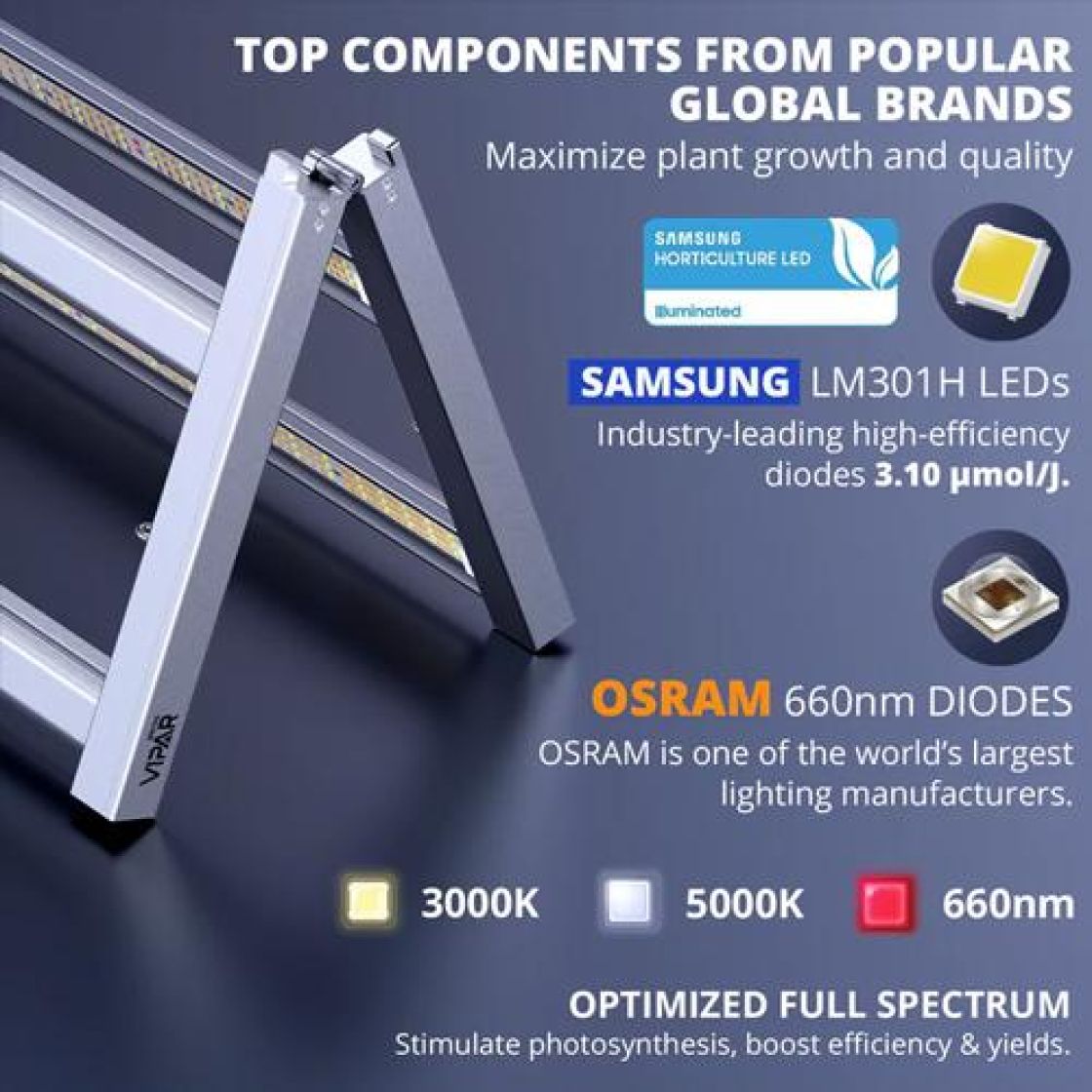 ViparSpectra KS3000 320W on matalaprofiilinen, passiivijäähdytetty ja säädettävä täyden spektrin LED-kasvivalaisin